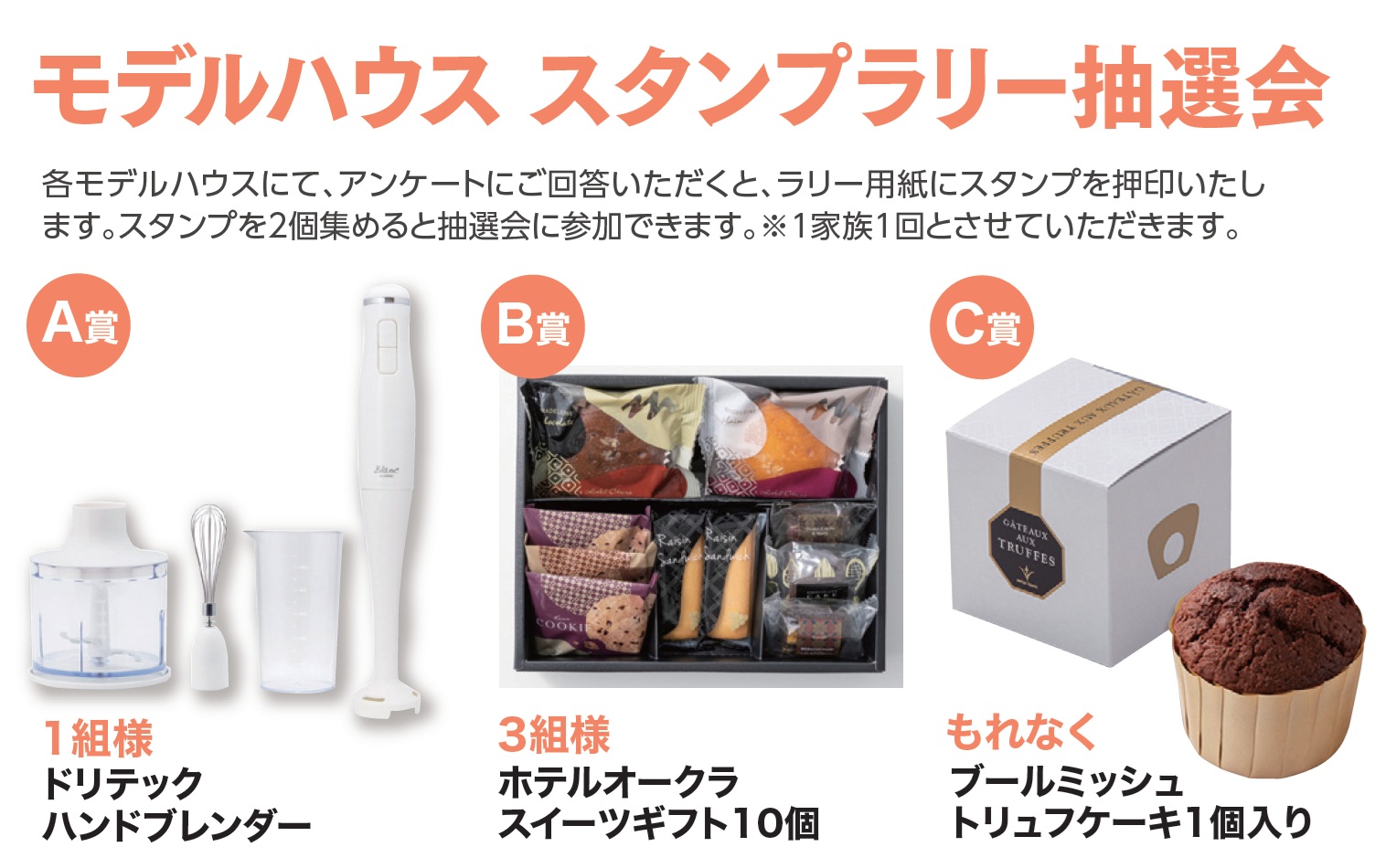 ※会場モデルハウス(A・Bの各エリアのモデルハウスを1棟ずつ)を見学して、スタンプ2個を集めてください。