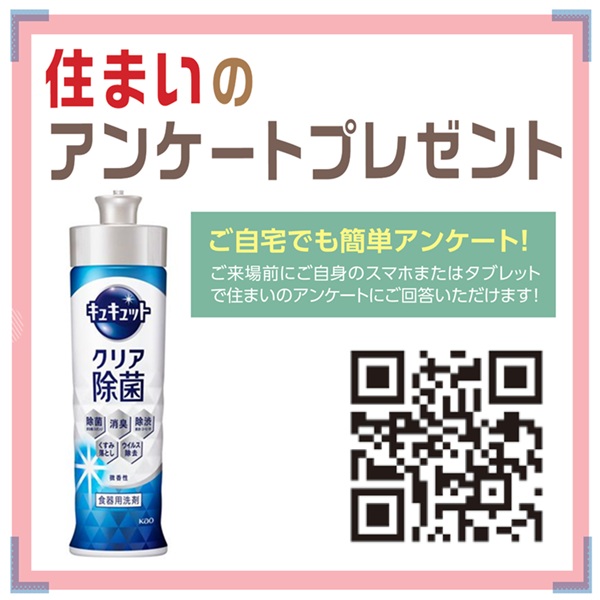 ※一部を除き、イベント等参加は「住まいのアンケート」にご協力頂いた方が対象です。アンケートのご回答は、ご来場のご家族1世帯1名様で、キャンペーン期間中1回限りとさせて頂きます。詳しくはインフォメーションセンターまで。