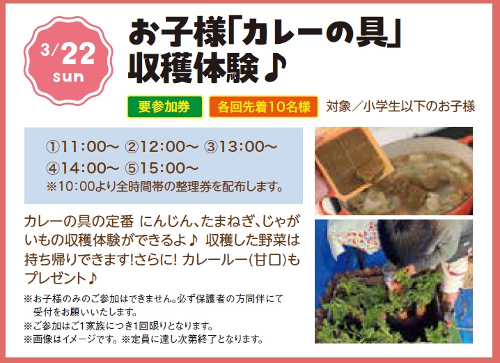 3/22(日)お子様「カレーの具」収穫体験♪