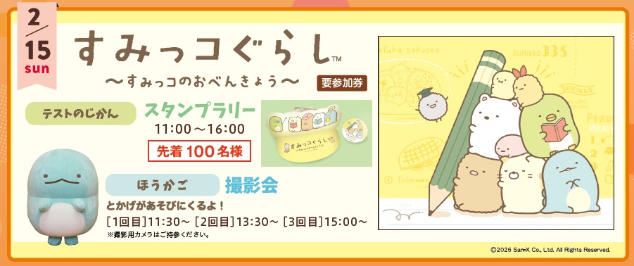 2/15(日)すみっコぐらし~すみっコのおべんきょう~