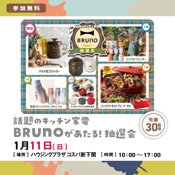 1月11日(日)話題のキッチン家電BRUNOがあたる!抽選会