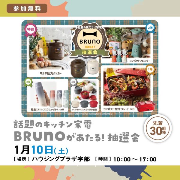1月10日(土)話題のキッチン家電BRUNOがあたる!抽選会
