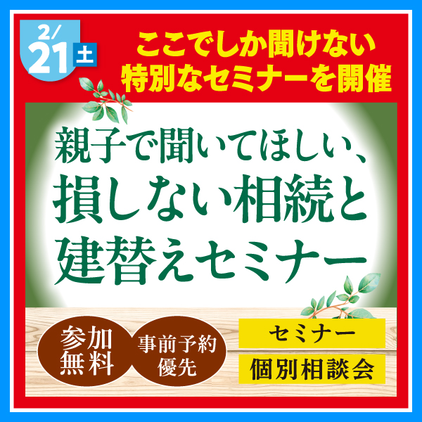 【土地フェス】2/21(土)ここでしか聞けない!損しない相続と建替えセミナー