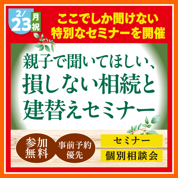 【土地フェス】ここでしか聞けない!2/23(月祝)損しない相続と建替えセミナー