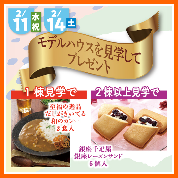2/11,14(水祝,土) 🎁モデルハウスを見学してプレゼント🎁