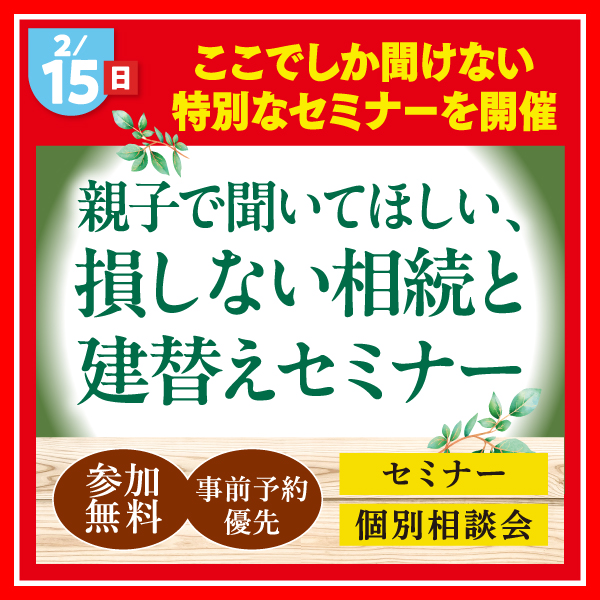 【土地フェス】ここでしか聞けない!2/15(日) 損しない相続と建替えセミナー