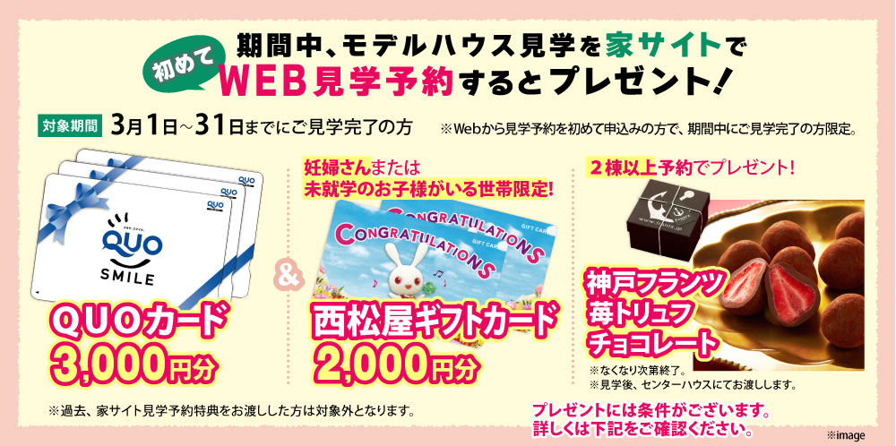 ※プレゼントは1家族様1回限り。複数棟ご予約いただいても1回のみとなります。