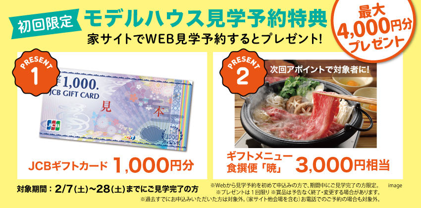 ※当申込フォームからご予約し、モデルハウスをご見学&アンケート記入された方が対象。