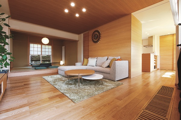 住友林業が独自に開発した木質梁勝ちラーメン構造、ビッグフレーム(BF)構法を採用。ビックコラム(大断面修正柱)と梁のみで住まいの構造を作るBF構造の特徴は、優れた耐震性を確保しながら開放感あふれる住まいを可能にすることです。構造と内装・設備を分けて設計するため、将来的にリフォームしやすい住まいを実現します。