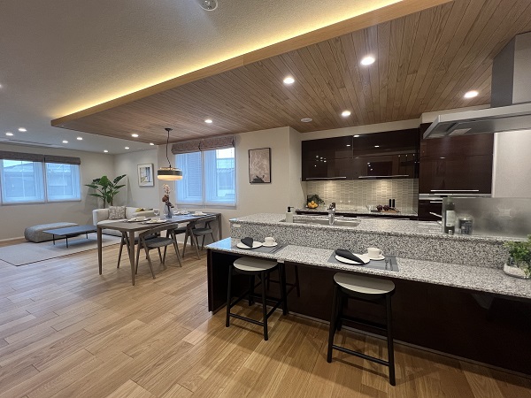 そして、キッチン・扉・フロー リングなど、暮らしを彩る設備・仕様は、一条工務店オリジナル。住まいに合っ た統一感のあるスタイリッシュな住空間が叶います。