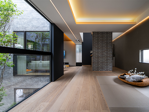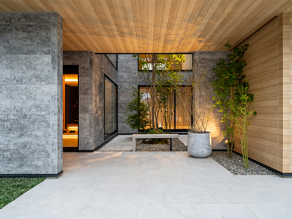 中庭を楽しむ3階建てコートハウス