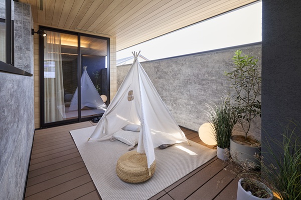 木下工務店の京都四条展示場は、スクエアで洗練された存在感のある外観デザインが印象的なモデルハウスです。住まいの中心に配置された中庭が、ご家族のプライバシーを守りながらも家中に開放感と安定した採光をもたらします。間取りでは二世帯や賃貸併用の住まい方もイメージできる、都市型住宅をご提案しております。
