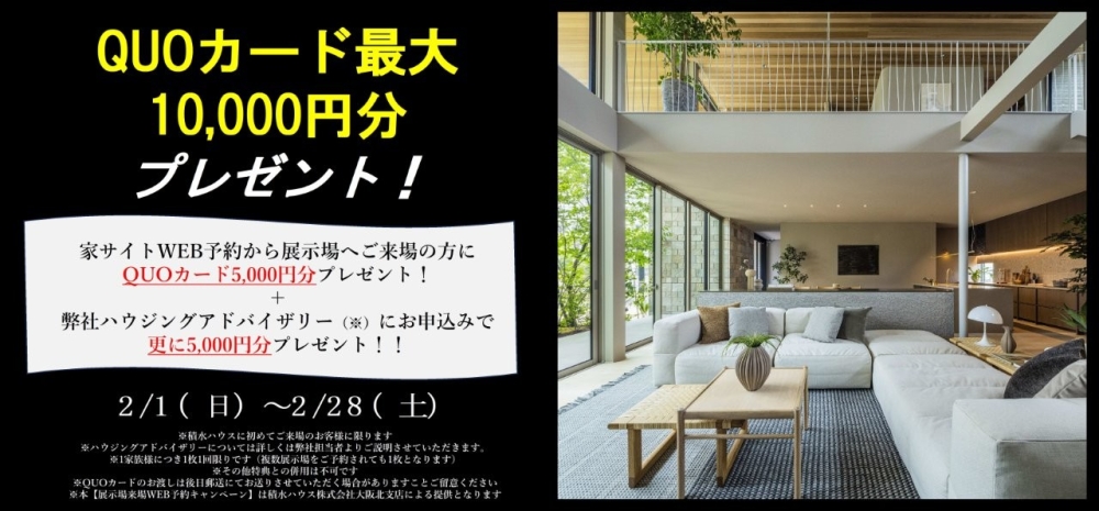 家サイトよりWEB予約のご来場で、QUOカード5,000円分プレゼント!