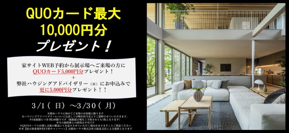 家サイトよりWEB予約のご来場で、QUOカード5,000円分プレゼント!