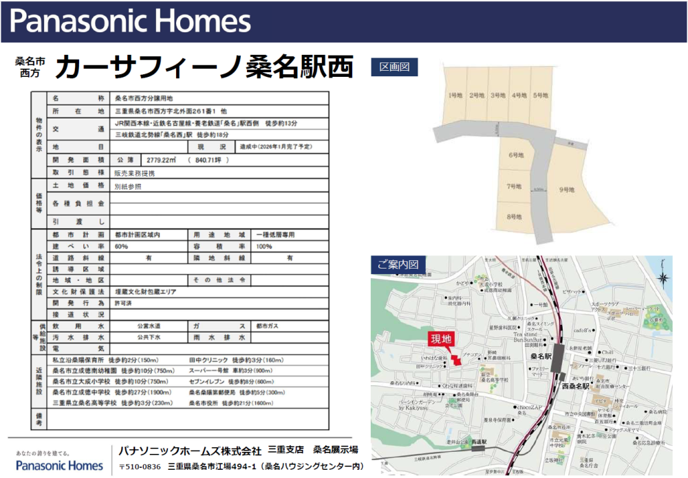 土地詳細情報(面積/価格)等は弊社桑名展示場までお問合せください。