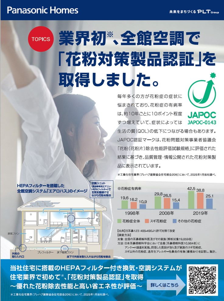 【業界初※】パナソニック ホームズの全館空調が「花粉対策製品認証」を取得!