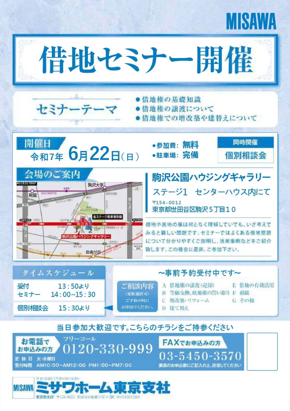借地で困っている方必見です!借地や底地の事は何となく理解をしていても、いざ考えてみると難しい問題です。セミナーではよくある借地問題について分かりやすくご説明し、活用事例などをご紹介いたします。この機会に是非、ご参加ください。