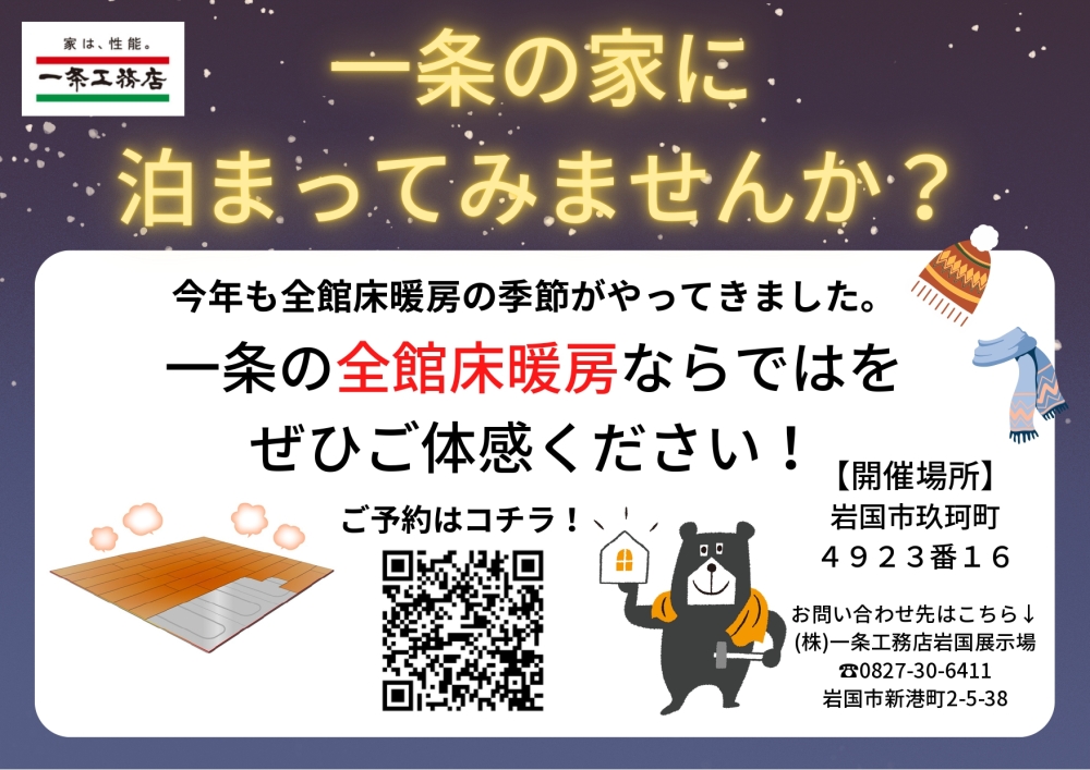 岩国市玖珂町にて実際の一条工務店のお家にご宿泊いただけます♪