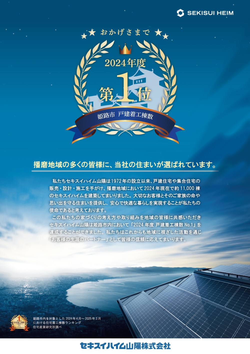 2024年度 姫路市戸建着工棟数 No.1👑【セキスイハイム】