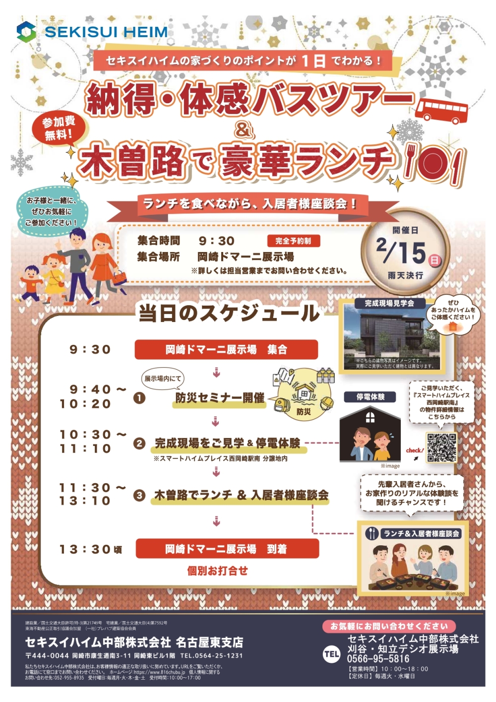 実邸見学&豪華木曽路ランチを食べながら、先輩入居者様へ赤裸々に家づくりの疑問点やセキスイハイムについてお聞きください!