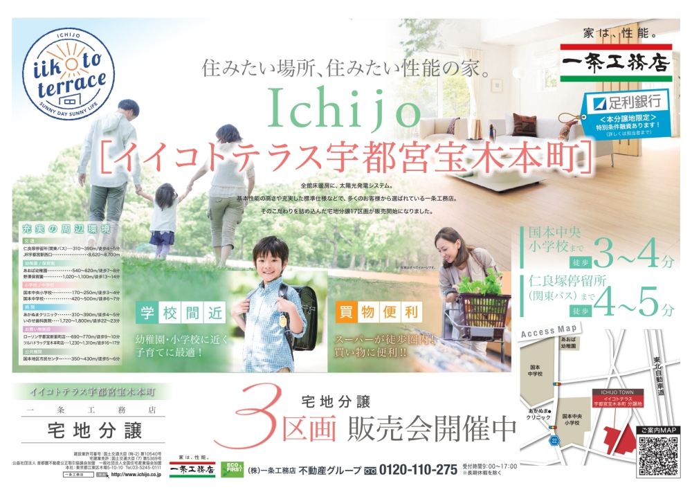 一条工務店の**自社分譲地「イイコトテラス宇都宮宝木本町」**は、