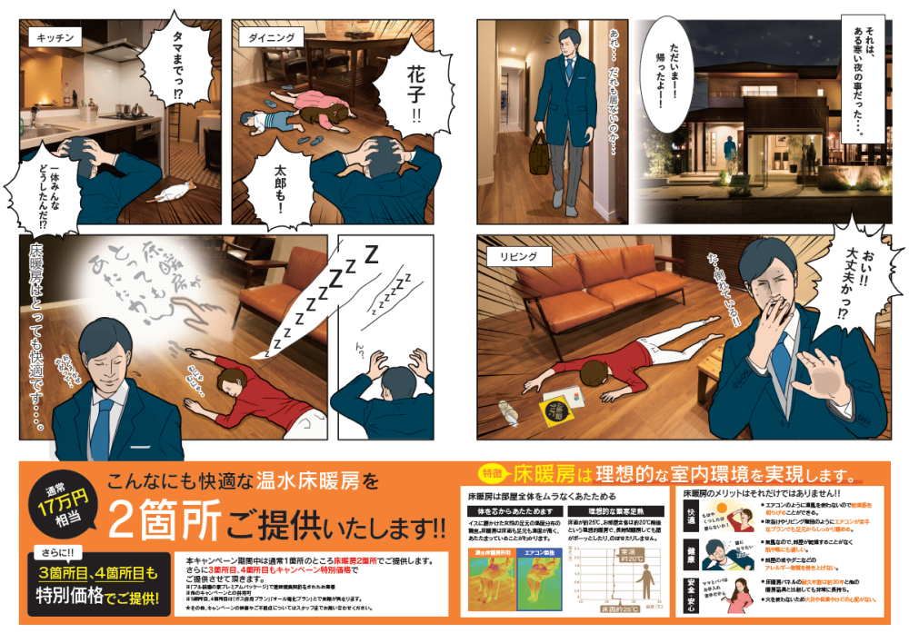 特典内容通常1カ所 → 今だけ 2カ所分の温水床暖房を標準装備!