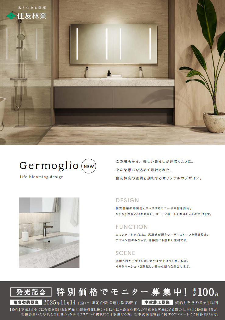 【住友林業】オリジナル洗面化粧台新発売記念!特別キャンペーン!