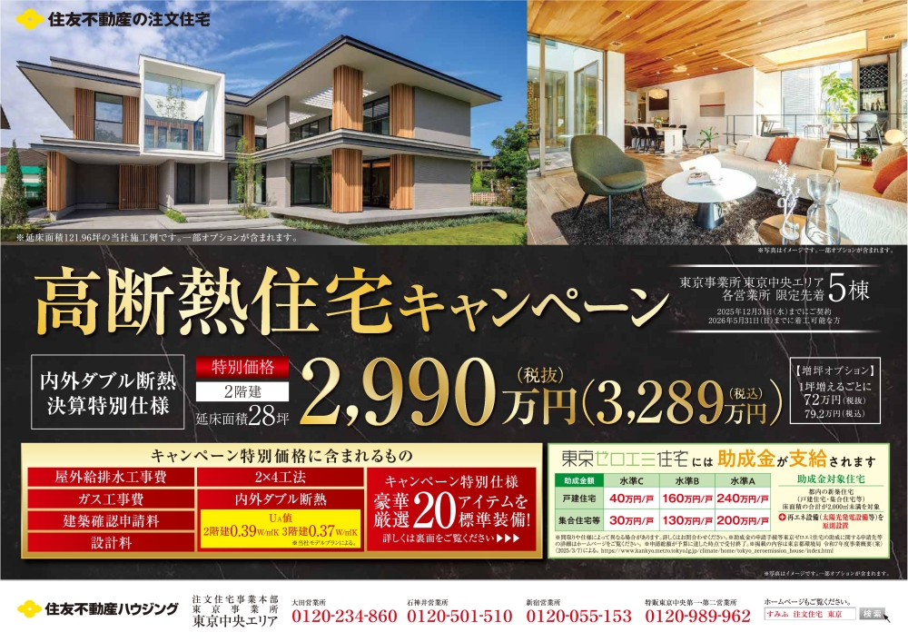 2025年12月31日(水)までにご契約いただき、2026年5月31日(日)までに着工可能な方へ、特別価格をご用意いたしました。