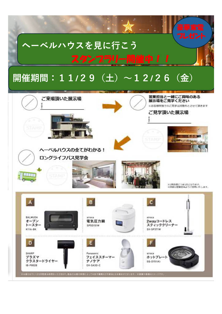 ★ヘーベルハウスを見に行こう★スタンプラリー開催!豪華家電プレゼント