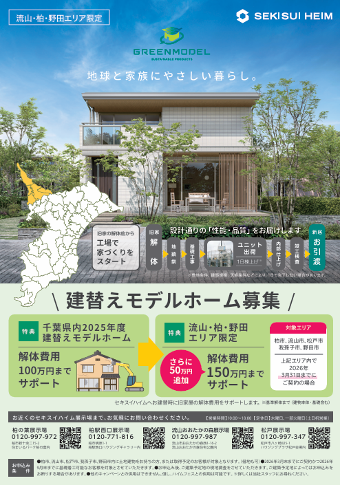 【建替え】柏・流山・野田エリア限定★解体費用150万円サポートします★