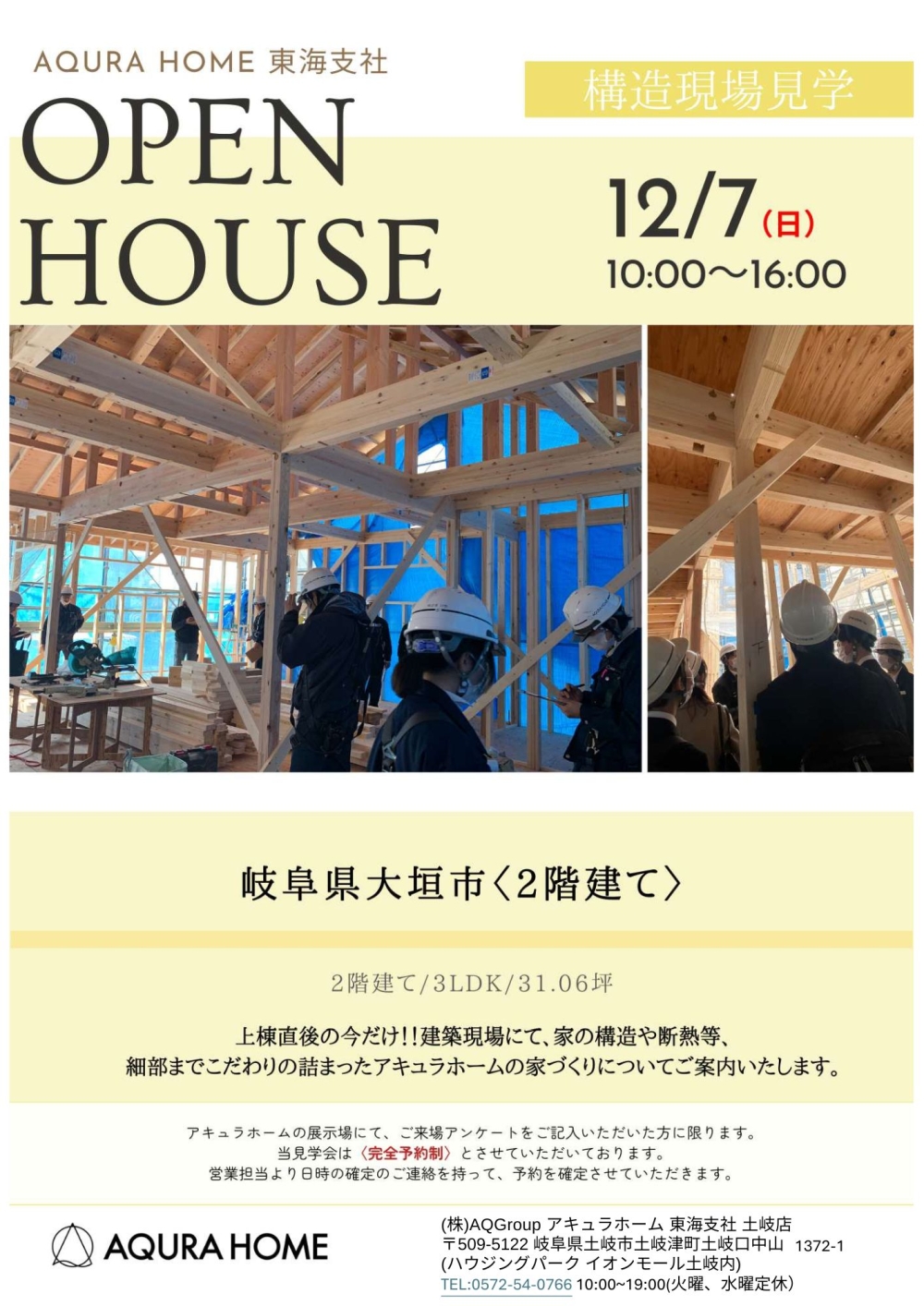 【オーナー様邸 構造現場見学会】12月7日(日)岐阜市にて開催!!