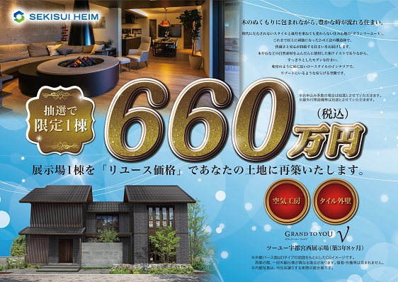 抽選で展示場1棟を「リユース価格」であなたの土地に再築いたします。