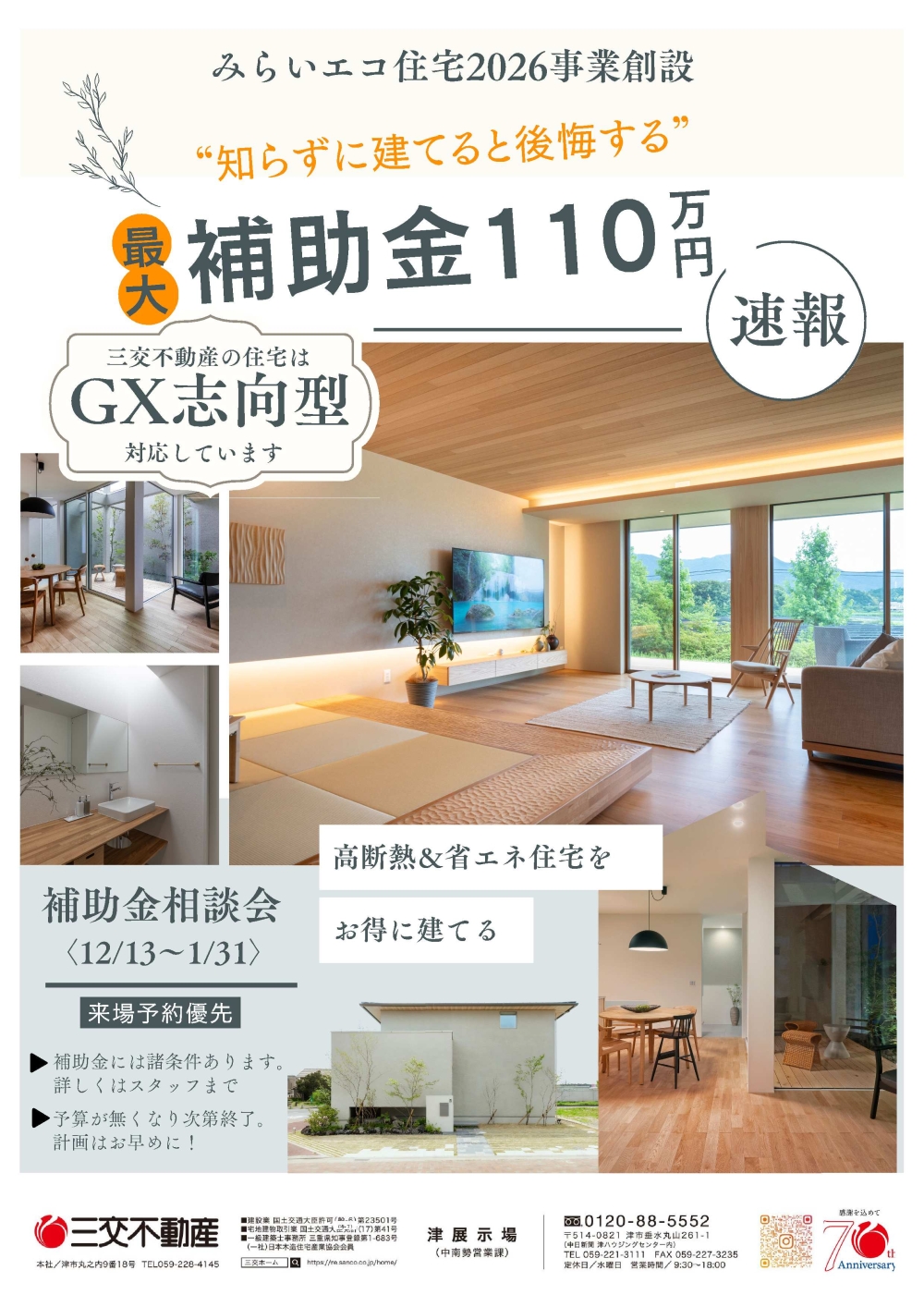 三交ホームでは補助金相談会開催中です!!《12/13~1/31》来場予約優先