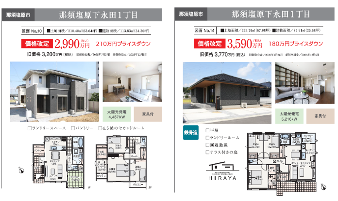 那須塩原下永田1丁目 建売住宅2棟 価格改定