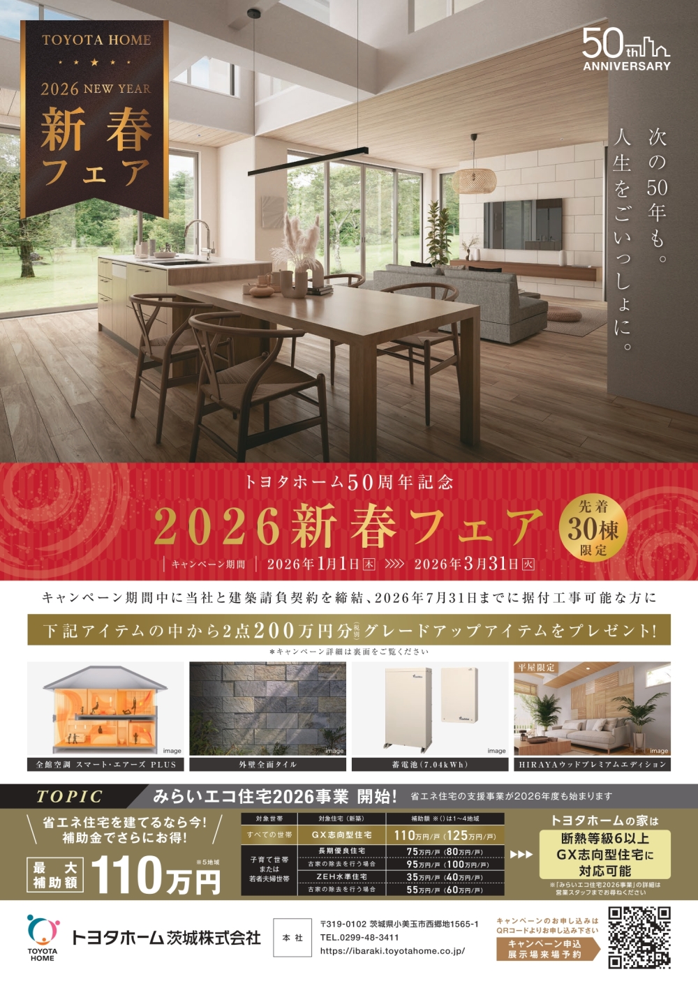 〈トヨタホーム50周年記念 2026新春フェア開催!!〉