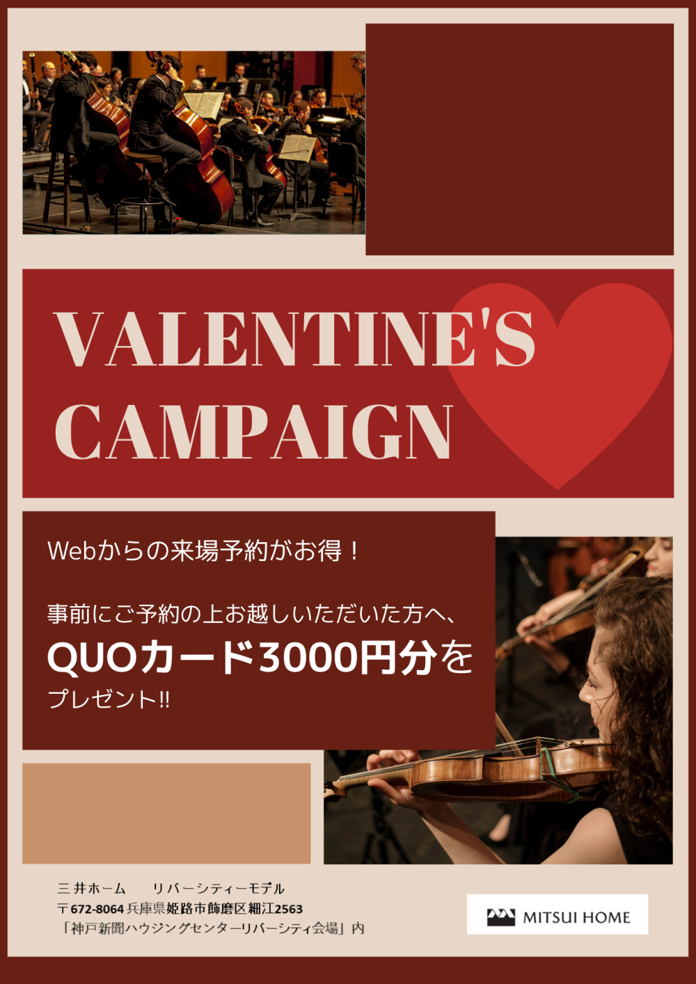 事前にご予約の上お越しいただいた方へ、QUOカード3000円分をプレゼントいたします。