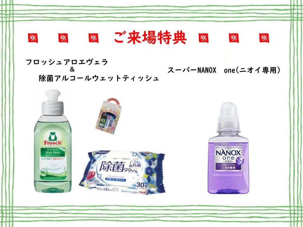 事前にご予約のうえ、ご来場いただいたお客様へ、毎日の暮らしにうれしい実用品セットをプレゼント!