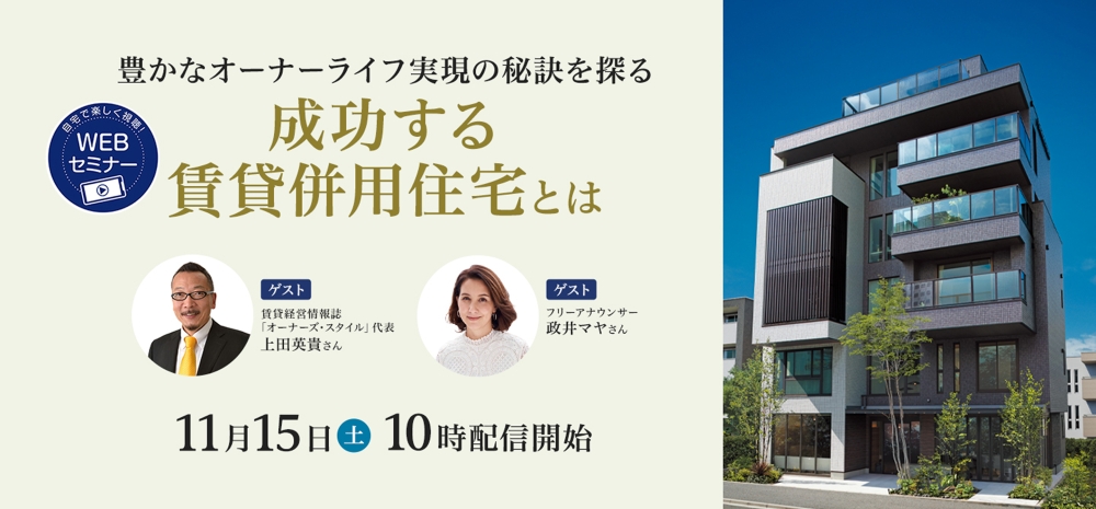 成功する賃貸併用住宅の秘訣とは?▶▶▶11/15(土)10:00~ 配信開始!