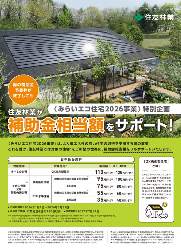 住友林業では、昨年から補助金落選者にもフルサポート!