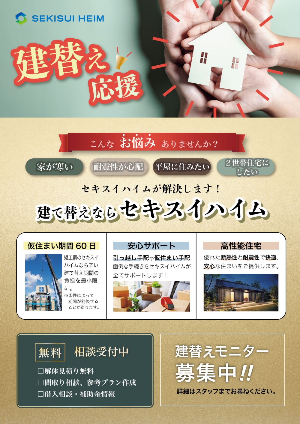 特に「建替え」での建築計画をお考えの方には、ぴったりのメーカーとなっております。