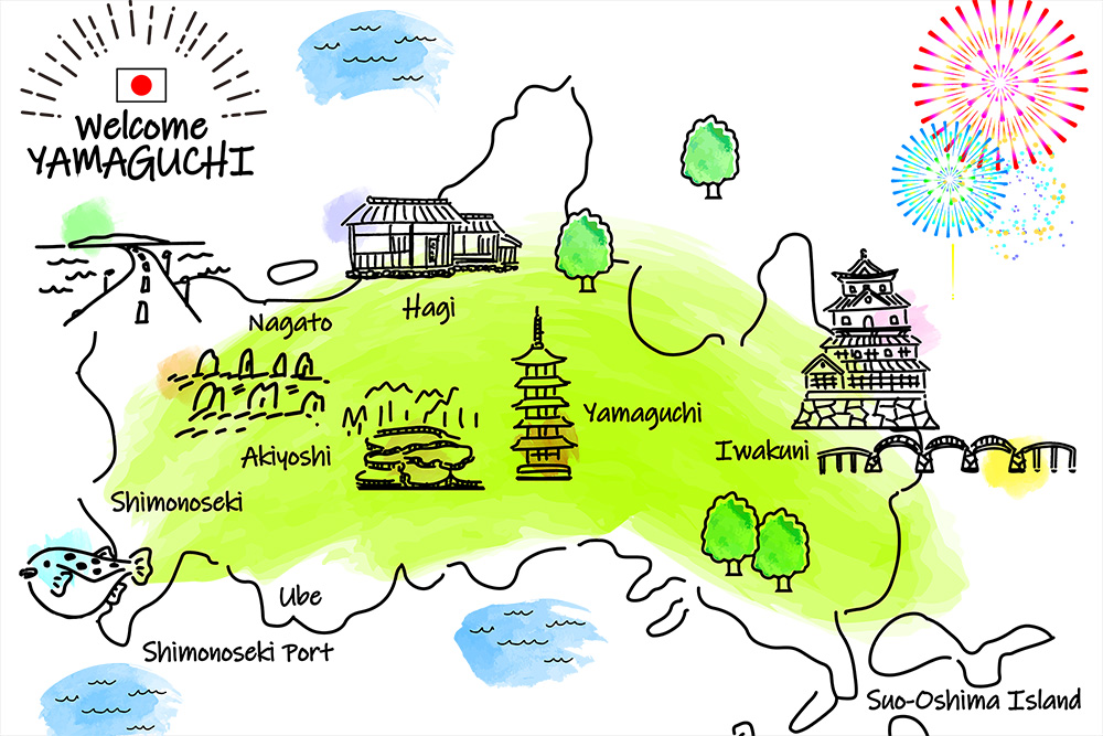 山口県には、歴史的なスポットや重要文化財、観光名所などがたくさんあり、さまざまなお祭り・イベントなども開催されています。源平合戦・壇ノ浦の戦いの舞台や大陸との貿易で栄えた室町時代の神社仏閣、フランシスコ・ザビエルや高杉晋作をはじめとする幕末志士にゆかりの場所など、観光名所が豊富です。