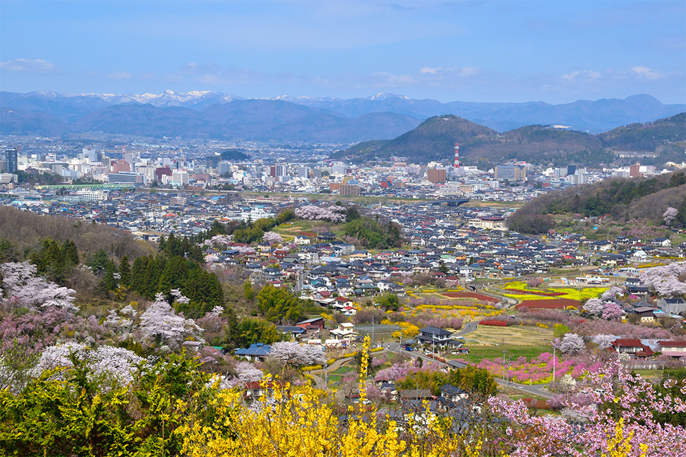 阿武隈川が流れる盆地特有の地形は果樹栽培に最適で、桃は全国有数の収穫量を誇ります。ほかにも、あんぽ柿やぶどう、りんごなどの果物栽培も盛んです。「健幸都市」の実現を目指し、市民が健康に暮らせる取り組みが推進されています。