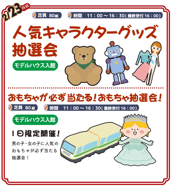 2/23(月/祝)おもちゃが必ず当たる!抽選会