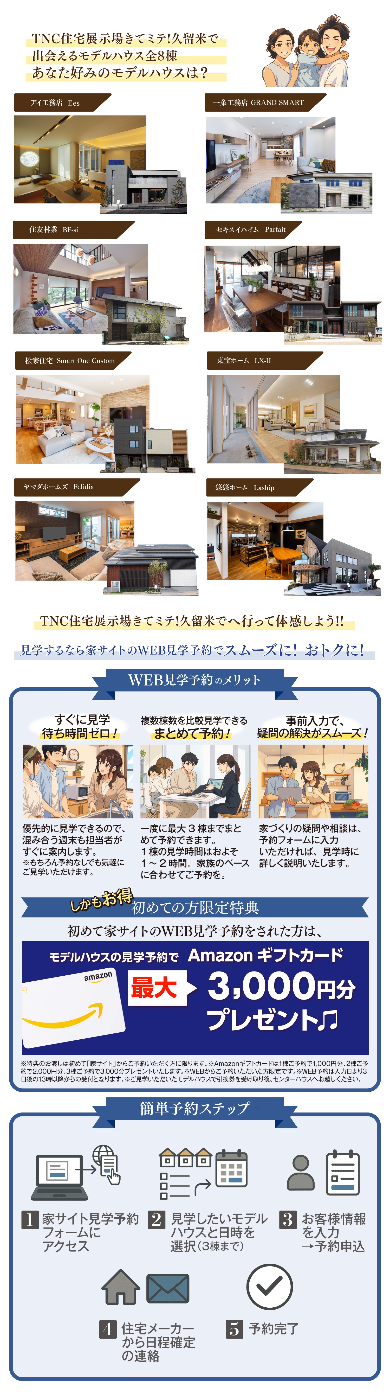 ※Amazonギフトカードは1棟ご予約で1,000円分、2棟ご予約で2,000円分、3棟ご予約で3,000円分プレゼントいたします。