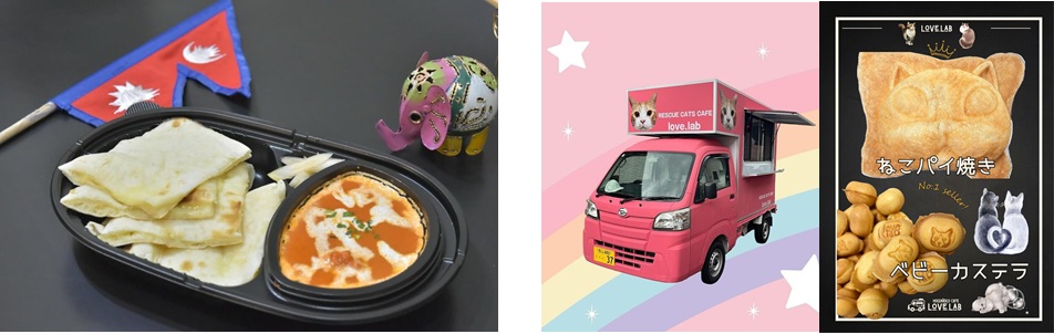 マヌシ(カレーナンセットなど) ・ラブラブ(ベビーカステラなど猫スイーツ) (フードカー)
