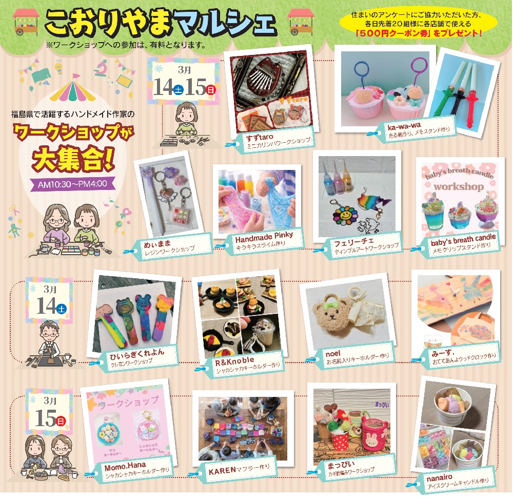 福島県で活躍するハンドメイド作家のワークショップが大集合☆