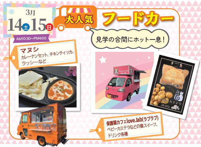 3/14(土)15(日) 人気のフードカーがやってくる!