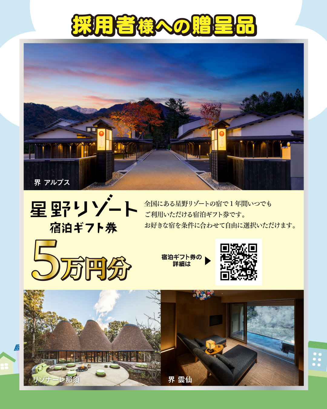 採用された方1名様には、「星野リゾート宿泊ギフト券5万円分」をプレゼントいたします!
