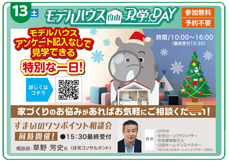 12/13(土) モデルハウス🏠自由に見学🔍DAY