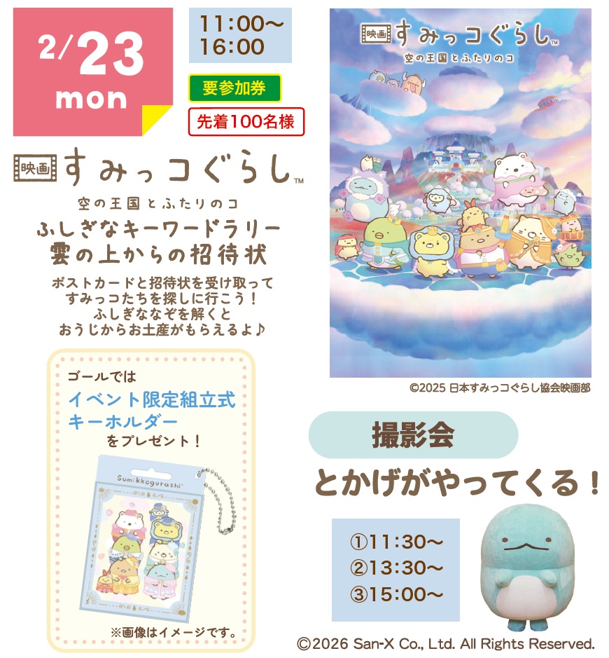 2/23(祝)映画すみっコぐらし ふしぎなキーワードラリー雲の上からの招待状